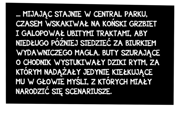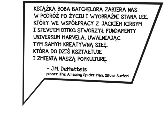 Rozmowy te kończyły się dopiero wtedy, gdy Lee wyrzucał Kirby’ego przed jego domem w East Williston na Long Island, sielankowej, małej dzielnicy z niecałymi trzema tysiącami mieszkańców. Leżała daleko od niebezpiecznych ulic Lower East Side, gdzie dorastał wielki artysta. Podobne konferencje, które odbywały się w rozpędzonym kabriolecie Lee sunącym do Long Island, na telefonicznych łączach czy w zagraconym biurze w Empire State Building, zdefiniowały na początku lat 60. narodziny opowieści o superbohaterach. Ale żaden z nich nie zdawał sobie wówczas sprawy, że te niezliczone kłótnie odmieniły sposób pisania komiksów.